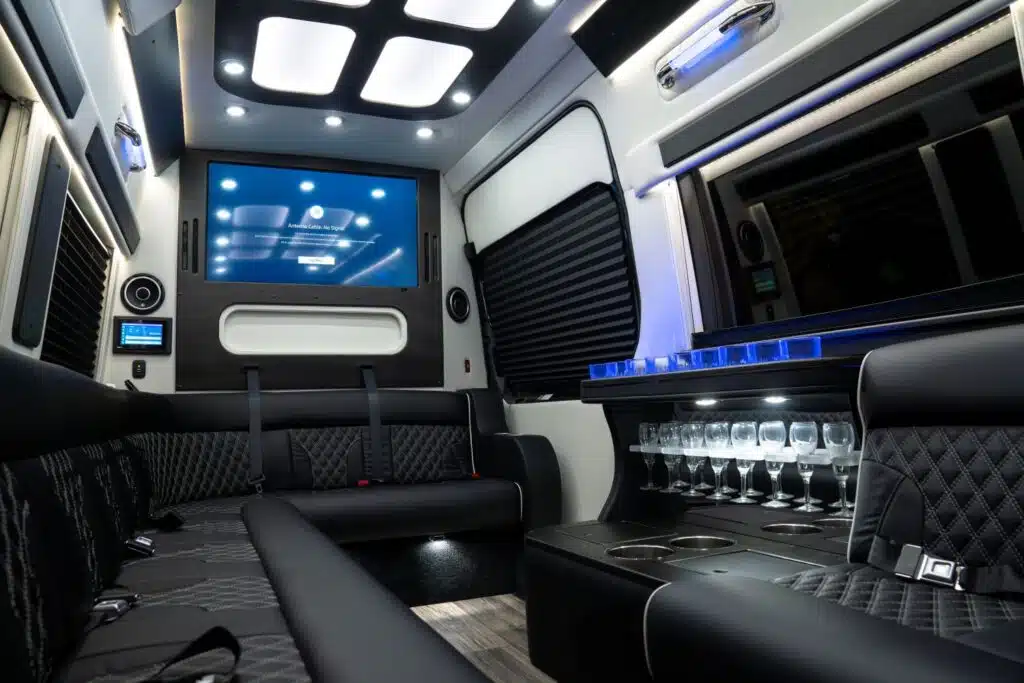Our Black Sprinter Van features premium seating, ambient lighting, and modern amenities to ensure every ride is relaxing and enjoyable. Whether you’re heading to a business event or enjoying a night out with friends, you’ll appreciate the quiet ride, smooth performance, and attention to detail that define the Dream Charters experience.